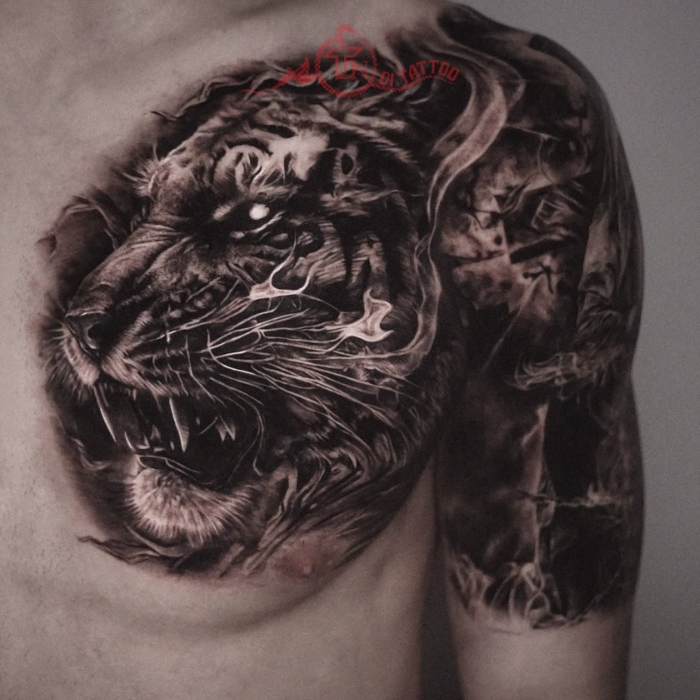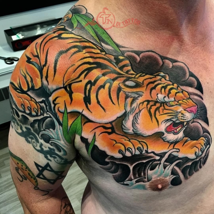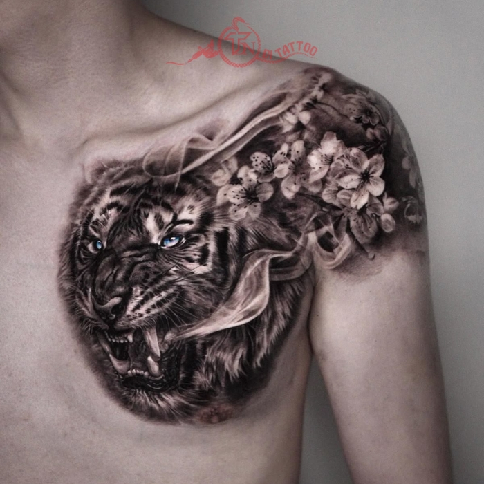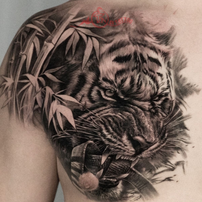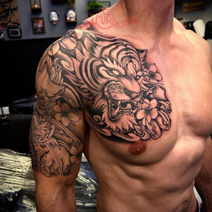 Thể hiện phong thái uy nghiêm: Hình xăm hổ vắt vai giúp chủ nhân toát lên khí chất mạnh mẽ, thu hút và khác biệt.
