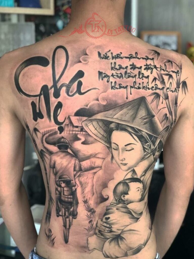 Hình xăm kín lưng về cha mẹ không chỉ là một tác phẩm nghệ thuật khổ lớn, mà còn là lời khẳng định mạnh mẽ về tình yêu, sự hiếu kính và lòng biết ơn sâu nặng. Đây là lựa chọn dành cho những ai muốn khắc ghi tình cảm không chỉ trong tim mà còn trên da thịt – một cách tri ân trọn vẹn và không thể phai mờ.